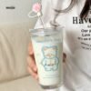 This stylish cup comes in a comfortable capacity range of 401mL to 500mL, ideal for enjoying larger servings of your favorite drinks. Its round shape not only enhances its visual appeal but also makes it easy to hold. Designed in a Korean style, it features cute and charming cartoon elements – including adorable little bear motifs that add a whimsical touch.
