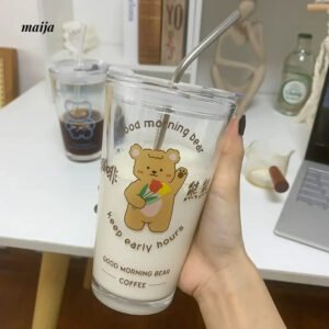 Introducing the adorable BANKE Coffee Milk Tea Glass Cup with Little Bears – a delightful addition to your drinkware collection! This charming glass cup merges functionality with a playful design, making it perfect for coffee, milk tea, or any of your favorite beverages. Crafted by the renowned brand Ban Ke, this drinkware is a wonderful blending of utility and aesthetic allure.