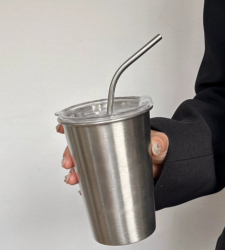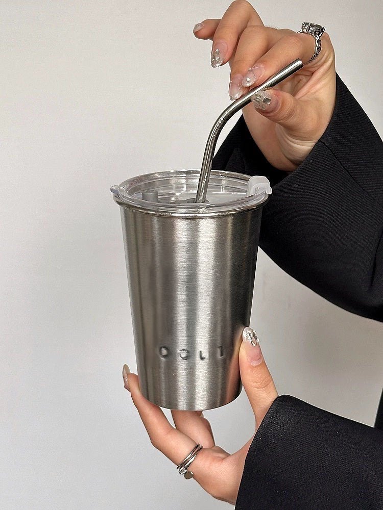 COFFEE FRUIT Capacious Glass Stainless Steel Coffee Metal Cup