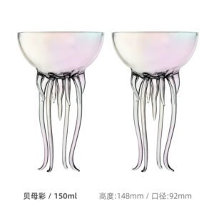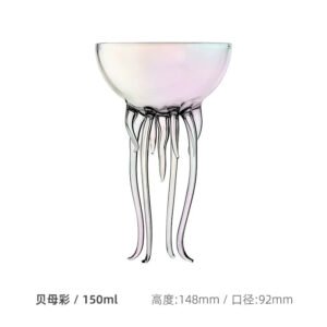 Crafted from high-quality heat-resistant glass, this cocktail cup can withstand temperatures ranging from -20Β°C to 150Β°C, making it versatile enough for hot beverages, cocktails, and even desserts. Its sleek design features a simple yet elegantly crafted body, enhanced by the dreamy look of colorful electroplated shells that resemble the jellyfish’s form, creating a visually striking addition to any table setting.